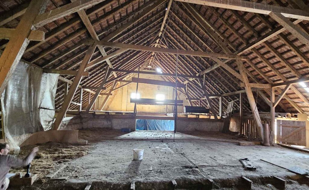 Da passt es gut, dass auch wir umfangreiche Umbaumaßnahmen an der Scheune planen. Vorgesehen ist der Einbau von mehreren Wohneinheiten, mit denen die bereits heute vorhandenen Platzverhältnisse künftig besser genutzt werden können. Dabei wollen wir wo immer möglich ökologische Baustoffe verwenden.
